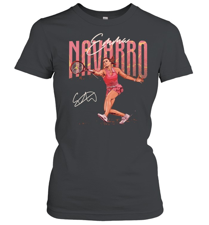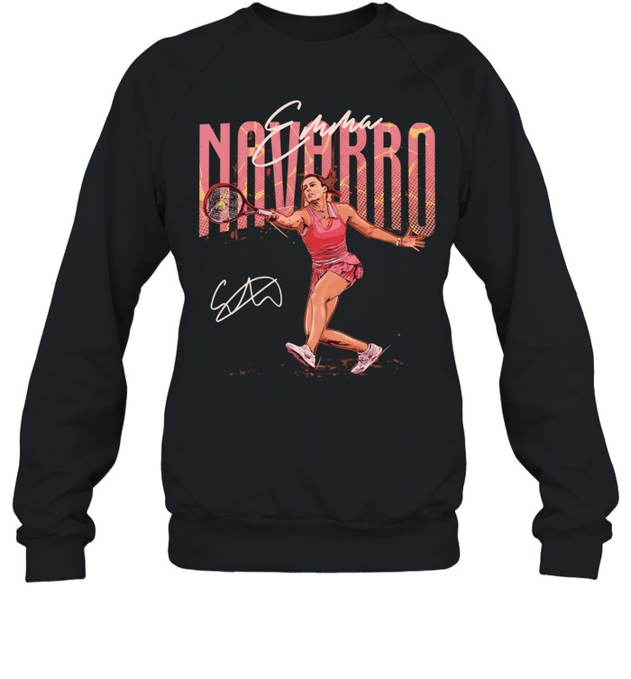 Indulge in the effortless charm of the Emma Navarro American tennis player name signature Unisex T-Shirt, where athleticism meets contemporary style. This design captures the essence of Emma Navarro’s dynamic spirit, marrying her signature with a sleek, modern typography that flows gracefully across the soft, high-quality fabric. The bold strokes of her name are expertly contrasted against a vibrant color palette, reminiscent of the energy found on the tennis court, combining electric blues and sunny yellows that evoke a sense of movement and vitality. The artwork’s visual style is not just a nod to sports but also a celebration of graphic culture, appealing to both tennis enthusiasts and fashion aficionados alike. Inspired by the rising trend of personalized apparel, this t-shirt embodies a seamless blend of streetwear aesthetics and athletic influence, making it a staple for anyone looking to express their love for tennis in a chic way. The exceptional printing quality ensures that the details of the signature remain crisp and vivid, making each wear a statement of both style and admiration for the sport.