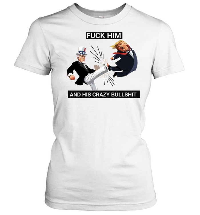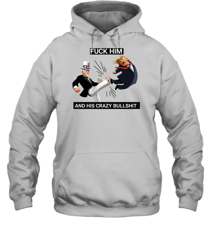 The Fuck Him and His Crazy Bull Shit Uncle Sam Kicking Trump Cartoon Unisex T-Shirt is built around unapologetic expression. Using a cartoon-style visual with exaggerated satire, the design delivers a direct and emotionally charged message. It’s not subtle—and that’s exactly the point. For those who follow political humor and aren’t afraid to voice their opinions, this shirt becomes more than just clothing; it’s a way to visually communicate frustration, critique, or commentary in a public space. Whether worn at a protest or as part of a casual outfit, it carries a strong, unmistakable presence.