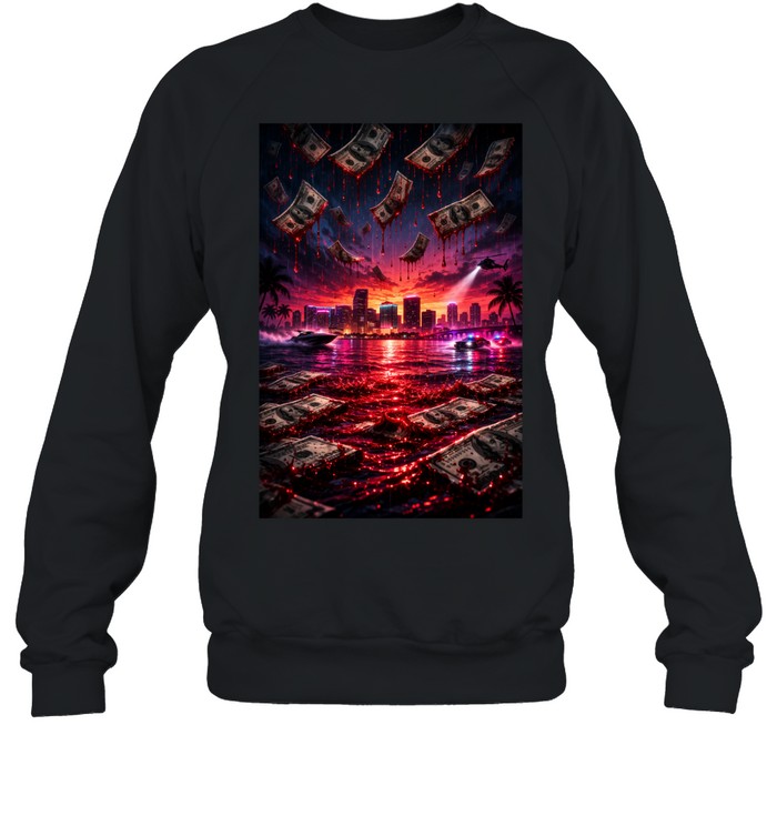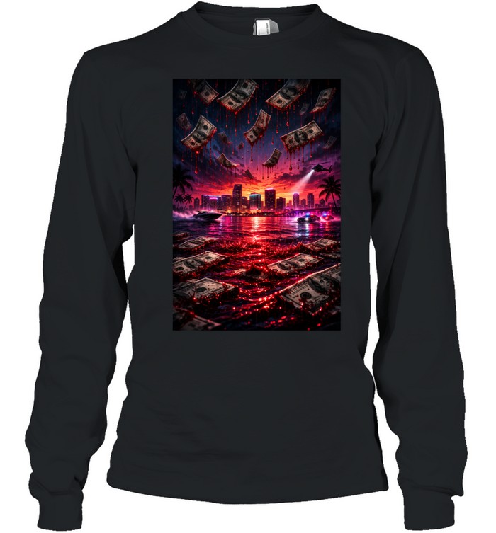 GTA 6 Inspired Blood Money Vice City Neon Cash Rain Dystopian Crime Graphic Unisex T-Shirt