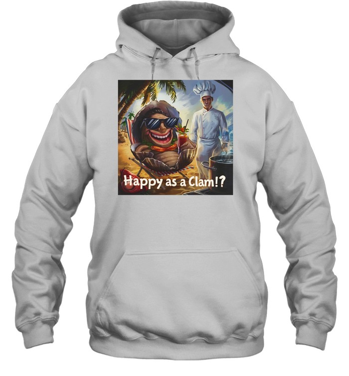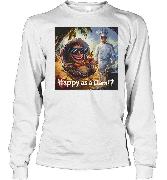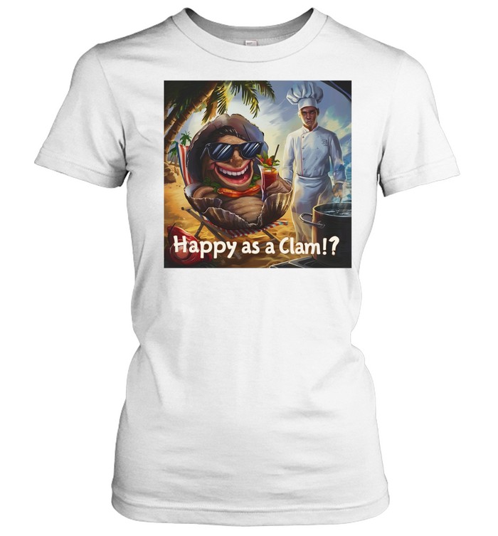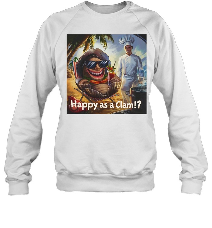 The phrase “happy as a clam” is a classic expression used to describe feeling content and carefree. In this design, it’s paired with a beach-themed cartoon to visually represent that relaxed, joyful state of mind.