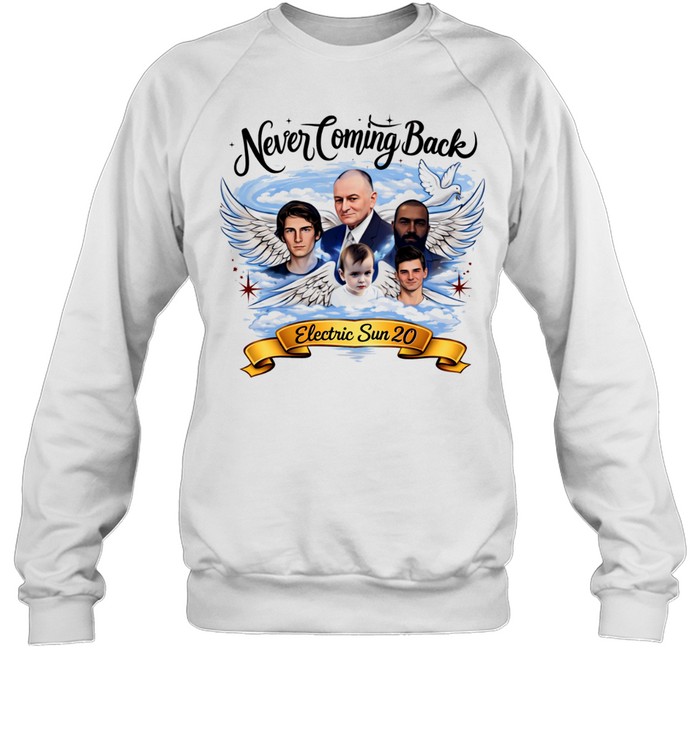 Never Coming Back Electric Sun 20 Heaven Tribute with Wings and Dove Unisex T-Shirt