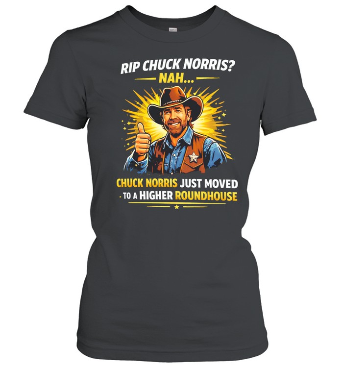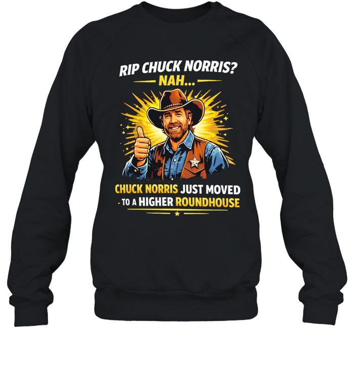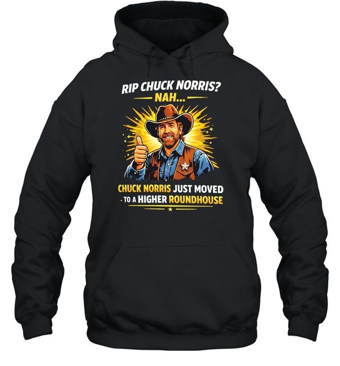 A funny, ironic take on a tribute theme—this design suggests Chuck Norris didn’t leave, he just “moved.” Perfect for casual wear, it’s made for fans who enjoy bold humor with a legendary twist.