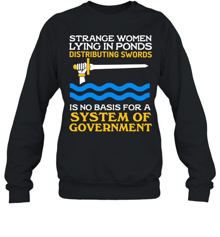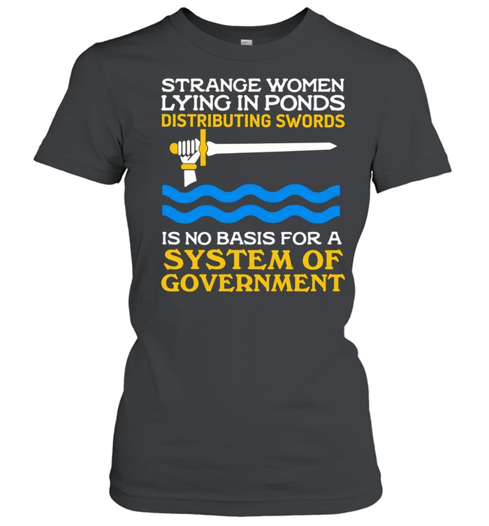 Elevate your casual wardrobe with the effortlessly cool Strange women lying in ponds is no basis for a system of government Unisex T-Shirt. This versatile piece is perfect for laid-back weekends, whether you’re heading to a music festival, meeting friends for brunch, or just lounging at home. Pair it with your favorite jeans or shorts for a streetwear vibe, or layer it under a denim jacket for a trendy look. The soft fabric ensures you stay comfortable while expressing your unique sense of humor and style. Ideal for anyone who appreciates a witty take on pop culture, this t-shirt allows you to showcase your individuality and spark conversations. Wearing this tee not only makes a fashion statement but also adds a dash of personality to your everyday outfits. Don’t miss out on the chance to add this fun and expressive piece to your collection!