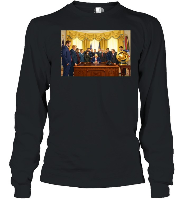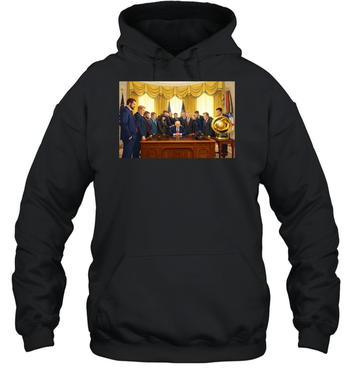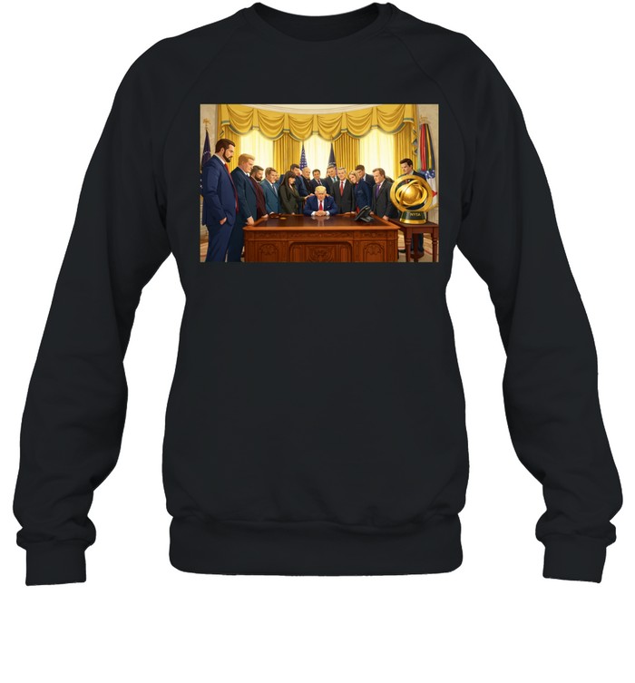 Political imagery often becomes part of internet culture, especially when artists reinterpret real-world moments through unexpected visual styles. The Trump Hosts Pastors for Oval Office Prayer Amid Iran Tensions Anime Unisex T-Shirt takes that approach by presenting a political scene through the lens of anime-inspired artwork. The design features Donald Trump hosting a prayer gathering inside the Oval Office during a moment of geopolitical tension involving Iran.