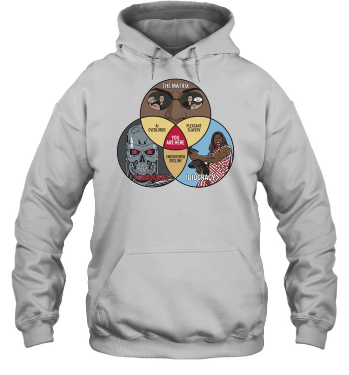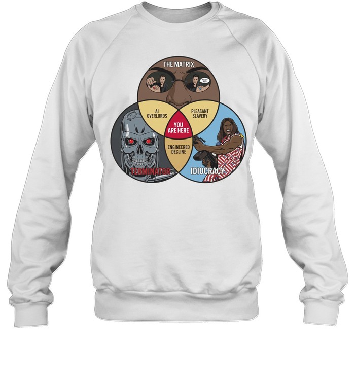 Venn of Movie Dystopia The Matrix Terminator Idiocracy Unisex T-Shirt