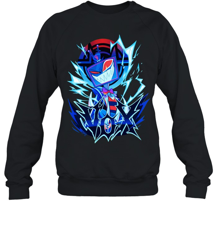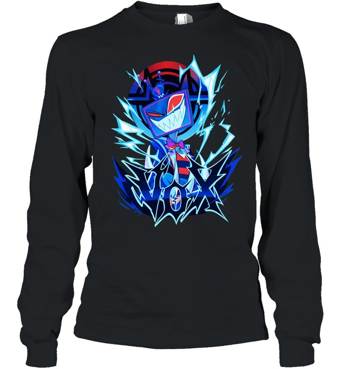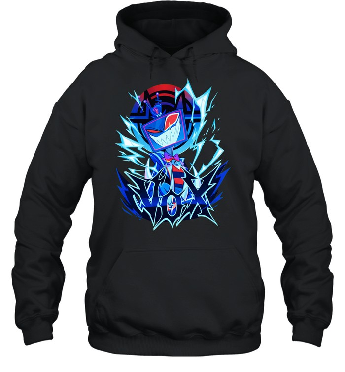 Step into the bold world of Hazbin Hotel with a striking Vox overlord design. This edgy character graphic is perfect for casual wear or fan conventions. A must-have for fans who love dark, animated style with attitude.
